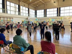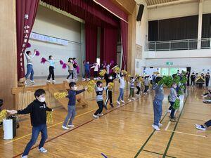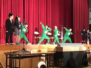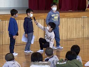 低学年部は「YMCA」の元気なダンスとありがとうのメッセージ,中学年部はノリノリの「マツケンサンバ」と感謝のメッセージ,5年生は工夫を凝らしたクイズと来年度に向けた決意を述べました。