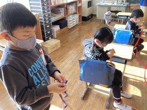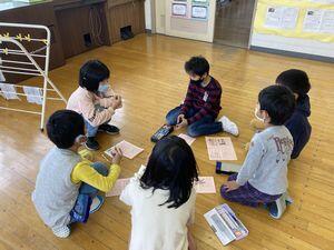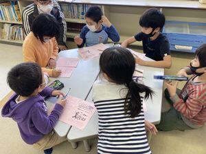 今日は2年生の生活科の授業を参観しました。「どうしたらみんなと楽しくあそべるのかな」という単元で,10月に交流する予定がある松圃幼稚園の園児のみなさんと遊ぶためのおもちゃをつくって試したり,そのゲームの説明書きを書いたりしていました。