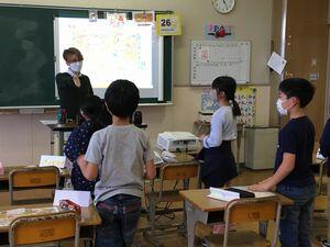 ↓今日で6年生の外国語は終了です。ALTのグレイ先生が,とっても楽しそうな教材を作ってきてくださったので,6年生は大盛り上がりです。グレイ先生,ありがとうございました。中学校でもよろしくお願いいたします。
