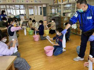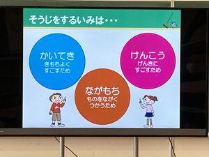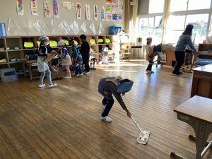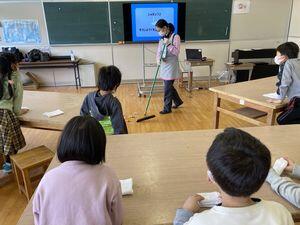 なぜ毎日お掃除が必要なのかから始まり,ほうきを使っての掃き方,ぞうきんを使っての机の拭き方,そしてぞうきんの洗い方・絞り方を学ばせていただきました。様子を見ると,ぞうきんの縦絞りがなかなか難しいようでした。ぜひ,御家庭でもチャレンジさせていただきたいと思います。