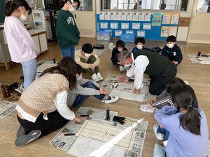 「虎舞」「七福神」「大漁唄込み」「防災」をテーマに班分けし,発表準備を進めていたのですが,教師の指示をしっかり聞きながら,班員同士楽しそうに,そして手際よく準備を進めることができていました。発表会が楽しみです。