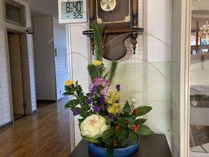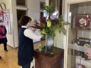 いつも中井小にお花を届けてくださる地域にお住まいの村上様が来校し,式場と玄関に飾る素敵お花を生けてくださいました。桜の枝や百合の花など,本当に素敵に仕上がっています。感謝申し上げます。