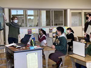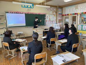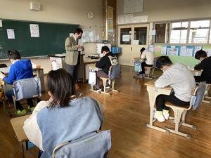 ↑養護教諭からコロナ感染予防の講話        ↑3年生 国語の授業