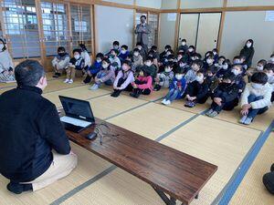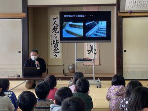 校庭の西側にも校舎や講堂があったことや,昔の体育で行っていた種目のこと,300人の児童と保護者,地域の方たちと盛大に運動会を実施していたこと等,たいへん分かりやすく説明していただきました。
