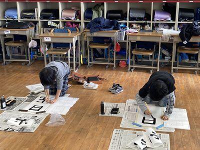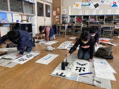 今日は2・3校時に校内席書大会を開会しました。放送での開会行事の後,2校時目は全学年が硬筆課題に,3校時目は3~6年生が毛筆課題に集中して取り組み,自分の中で「この作品が1番!」と思えるものを2枚程度完成させるよう,集中して書きぞめに臨みました。
