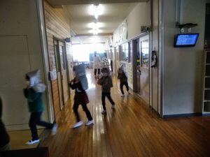 昇降口のガラスが壊れることを想定して,防火シャッターも防火扉も閉めたので,後始末が大変でしたが,命を守るための良い訓練ができました。