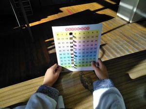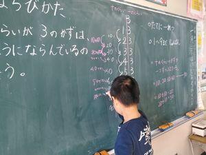 「ならびかたしらべ」をじっくり見て,一の位が3の縦の列の数の並び方を考えます。K君は「十の位の数が1ずつ増える」と発表しました。