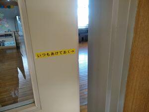 コンテナは給食室に収められます。コンテナが入るように入り口の戸を3枚開きに改修しました。