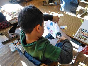 飾り用の色紙を丁寧にハサミで切り出している子もいました。作業が早く進んでいるM君にR君からヘルプの要請が・・・・教え合っている姿は微笑ましいですね。