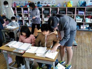 5年生は多角形の性質のテストの見直し。6年生は国語「表現をくふうして文章を書こう」を学習していました。みんな真剣に取り組んでいて,大変立派でした。