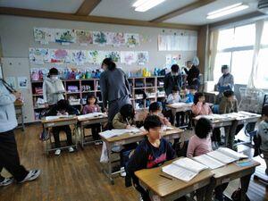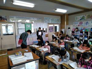 式がすこし早く終わったので,校舎を回ってそれぞれの学年の様子をのぞいてみました。1年生は,先生から子年の由来を聞き,ねずみのように「いいね」を増やそうと話し合っていました。2年生は提出物の整理中。終わった子たちが先生のメッセージの前で新年の挨拶をしてくれました。