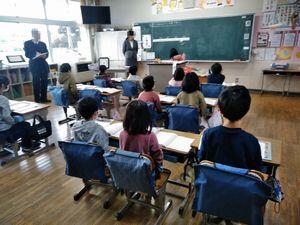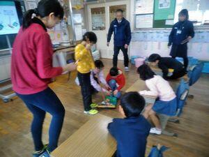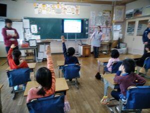そのあと,3人に子供たちから手作りの感謝状が渡されました。この日のために分担して準備をしていました。にこにこ顔で受け取ってもらい,子供たちも嬉しそうでした。