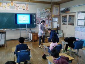 今日の3,4校時,ダスキンの方々を講師にお迎えして,2年生と5年生のお掃除教室を行いました。