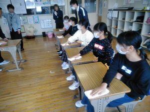 やり方を教えてもらった後は,実際に掃いたり,拭いたりしました。今日の学習が教室やお家で生かされるといいですね。ちなみに,ホコリをしっかり掃除する掃き方を「おさえばき」というそうです。
