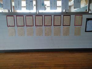 校長室前の廊下に貼ったので,給食の準備・片付けの際に,お兄さん,お姉さんが見てくれています。