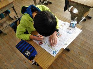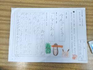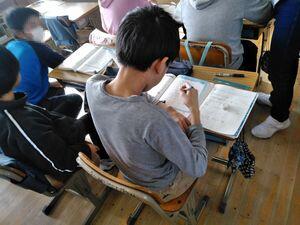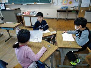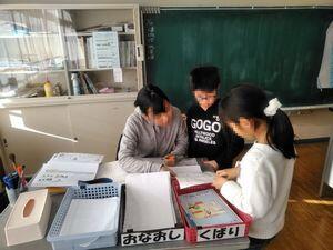 学期末の特徴は,テスト直しだけでなく,欠席などの理由でやり残したプリントをするなど,複数の学習が同時に行われるところでしょうか。3年生では,テストを直す子,硬筆に取り組む子,終業式の代表のことばを書く子がいました。