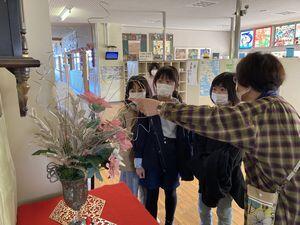 ↓ 昨日(15日)のことになります。いつも中井小の玄関を素敵な花で飾ってくださっている,近くににお住まいの村上様がいらっしゃり,今回もすばらしいクリスマスアレンジメントを飾ってくださいました。右上奥に見える白いふわふわの羽は,本物のダチョウの羽なのだそうです。可愛らしいサンタさんまでお貸しくださいました。中井小のために,本当にありがとうございます。