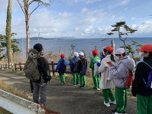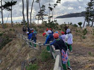 中井小学校では全学年で「中井の遊歩道を歩く会」の時間を設定しています。今日は3・4年生が,半造から中井小学校までの「宮城オルレ 気仙沼・唐桑コース】の約5kmを観光協会の熊谷様案内のもと,全員が踏破しました。多くの植物が冬の眠りについている時期ではありましたが,熊谷様から「この時期の海の色は格別です!」と教えていただき,写真を見ると全くそのとおり。子供たちも「中井地区の美しさをたくさん見つけることができました!」「みんなで励まし合って全員が歩くことができて嬉しかったです!」と感想を発表していただきました。御多用な中,またとても寒い中,ガイドを務めていただいた熊谷様に心から感謝申し上げます。