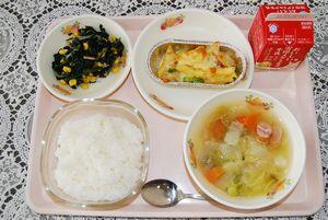 ミネストローネ 牛乳 (ごはん) 356㎉(ごはん除く)