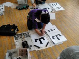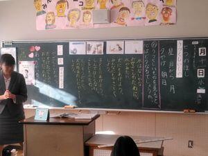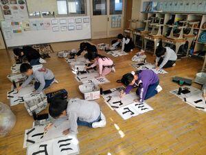 たいした腕はないのですが,今年は書きぞめの指導のお手伝いをすることになりました。今日から毛筆で,初日の今日は3年生が対象でした。