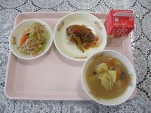 豆もやしの炒め煮 芋の子汁 牛乳 (ごはん)360㎉(ごはん除く)