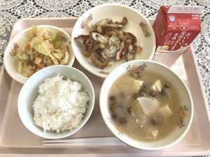 キャベツと油揚げのみそ汁 牛乳 (ごはん)
