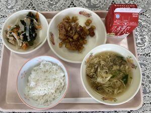 わかめと卵のスープ 牛乳 (ごはん) 372㎉