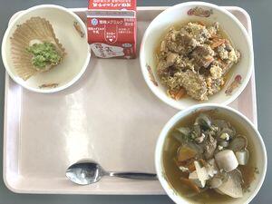 学校給食週間4日目です。給食では気仙沼産のわかめがみそ汁やサラダなどいろいろな料理に登場していますが,今日はいつもの葉の部分ではなく,茎わかめを使ったサラダにしてみました。また,スープには気仙沼産のサメの肉を使ったふか団子が入っています。気仙沼は海の恵みを受けて,いろいろな海産物が手に入りますね。それが当たり前ではなく,命をいただいていることや関わってくれている人への感謝を忘れずにいただきましょう。