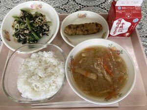 全国学校給食週間2日目です。今日の給食には,宮城県の特産品がたくさん登場しています。牛タンは宮城県のグルメを代表する食べ物ですよね。今日はつくねに刻んだ牛タンが入っています。また和え物に使っている雪菜は宮城県の伝統野菜です。雪の降る時期の寒さに耐え,深い緑色の葉に栄養とうま味を蓄えます。さらに特産品ではありませんが,ひきなは宮城県の郷土料理と言えるもので,大根やにんじんなどを千切りにしてゆで,一晩凍らせてから汁物に使います。宮城県のお雑煮に欠かせない食材の一つです。