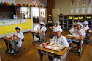 今日は今年初めての「ふれあい給食」でした。給食の時間に担任以外の先生も入って,子供たちと一緒に給食を食べるというものです。本来であれば子供たちと向き合って,楽しい会話をしながらおいしく給食を食べるという企画なのですが,コロナ感染予防ということで,同じ向きで,話をしないで,静かに見守りながら給食を食べました。何度も紹介していますが,子供たちは「黙食」をきちんと守り,噛むことや味わうことに集中できています。時々目が合ってにっこりするだけでも,給食が格段においしくなります。今日おじゃました1年生は,食缶を全て空にできました!これもまた素晴らしいことです。