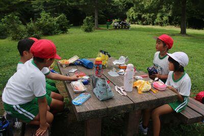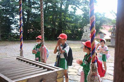 今回は,遠足のウォークラリー場面以外を中心に紹介します。御崎神社参拝~昼食・公園での遊具遊びの様子です。