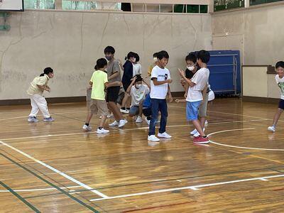 2年生は自己紹介・校舎探検・生活科で作ったおもちゃの紹介とおもちゃ遊び。3年生は体育館で自己紹介後にいろいろなゲームを楽しんでいました。