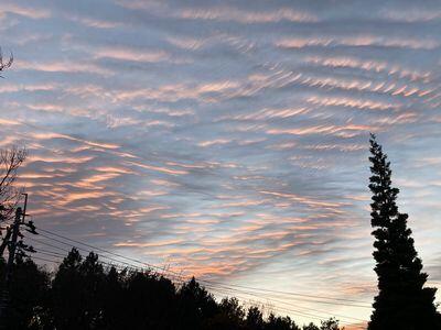 ↓美術館を出たら,夕焼けに雲がてらされているのか,きれいな(不思議な)空の様子を写真に収めました。