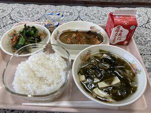 ほうれん草のみそ汁 牛乳 (ごはん)