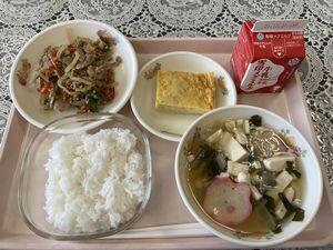 じゃがいもともやしのみそ汁 牛乳 (ごはん)