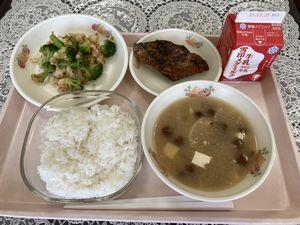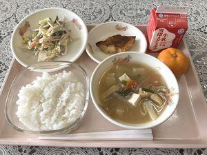 鮭のちゃんちゃん焼き 小松菜の礒香和え 牛乳