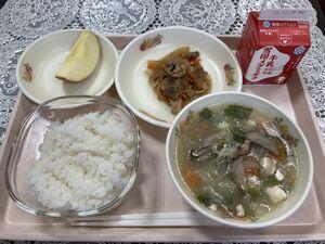 豚肉と白菜のみそ汁 牛乳 (ごはん)
