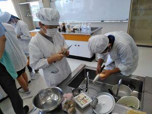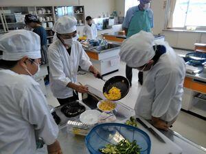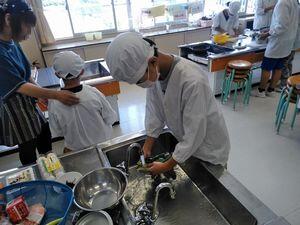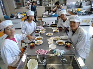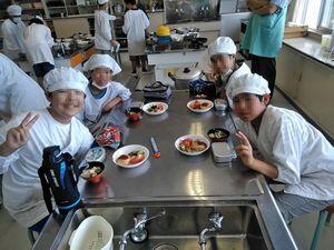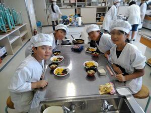 6年生は2校時から家庭科の調理実習,班ごとに考えたおかずとみそ汁を作りました。