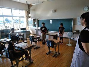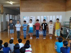 1校時,5年生の野外活動の解団式を行いました。5人を代表してS君が三日間の感想を述べました。それを聞いていて3つの野外活動のめあてが達成できたのだと思いました。