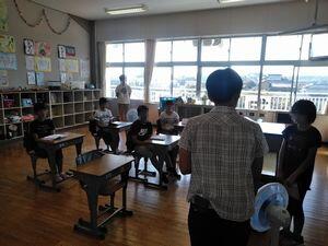 昨日とあまり変わらない画像ですみません。大島での活動の様子は,それぞれの学年のお便り等で確認してください。最高学年の4年生の意気込みが感じられた出発式でした。