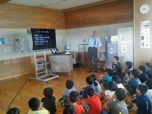 学期に1回ずつ実施している防災朝会,2学期は台風について学びました。(ちなみに,1学期は地震・津波について学習しました。3学期は竜巻・落雷について学習する予定です。)