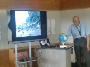 A先生から,台風時の備え,避難の際に適した履き物など台風について豆知識をたくさん教えてもらいました。