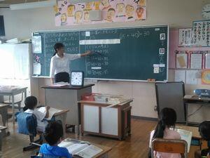 1校時は2年生の初任研の実践授業の様子を見に行きました。3口の足し算の結合法則の勉強でした。15+30+40の計算の仕方について,自分の考えをノートにしっかり書いていました。 その後15+30+40)=(15+30)+40であることを学びました。