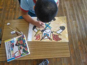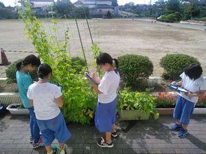 となりの1年生は,コンクールに出品する絵の仕上げを,5年生は,1年生の朝顔の花と,4年生のゴーヤの花の作りを調べていました。