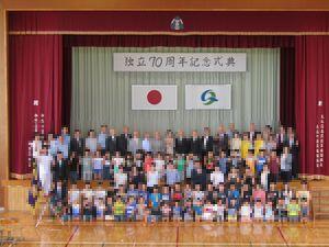 最後に記念写真を撮影しました。今日の式を,70年の節目をしっかり受け止め,愛校心を育て,中井小学校の未来を考える機会としていきたいと思います。有り難うございました。
