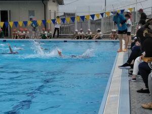 こちらも,70周年記念式典以上にお家の方々に応援に来ていただきました。プールサイドだけでなく,テラス席にもいらっしゃったほどです。