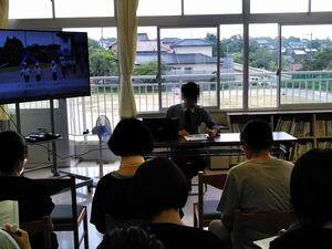 A先生から,台風時の備え,避難の際に適した履き物など台風について豆知識をたくさん教えてもらいました。