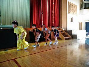 ちょうど体育館に向かうところだった3年生は「頑張るぞー!」と,気合いを注入。4年生以上は係の仕事の最終チェックかと思いきや,会場で声出し中。本日一回目の本番でした。