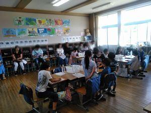 6年生は社会科で室町時代の学習です。社会科が得意な昭彦先生が担当です。昭彦先生は地域の歴史の掘り起こしなどにも取り組む熱心な先生です。唐桑にも巡検に来たそうです。
