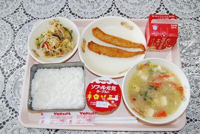 ししゃもフライ 焼きビーフン 白菜の中華スープ(リクエストメニュー)